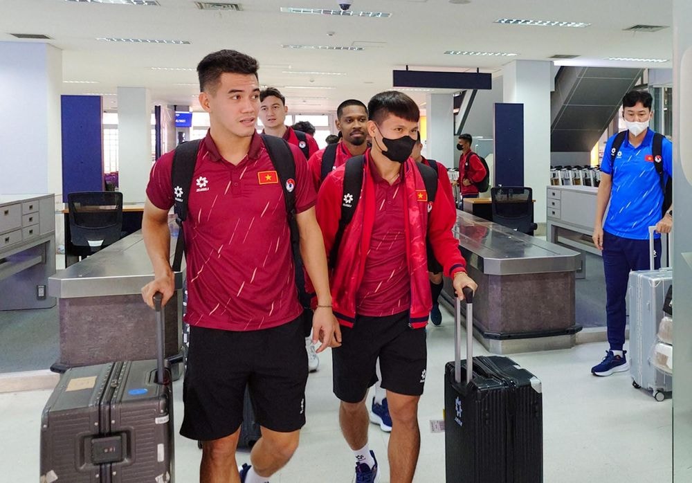 Ngay khi đặt chân xuống sân bay, các tuyển thủ Việt Nam như Quang Hải, Duy Mạnh, Hoàng Đức đã nhận được sự chào đón của đông đảo người Việt đang sinh sống và làm việc tại Lào. Nhiều cổ động viên có mặt từ sớm để theo dõi và ghi lại khoảnh khắc đội tuyển xuất hiện tại khu vực sảnh đến.
