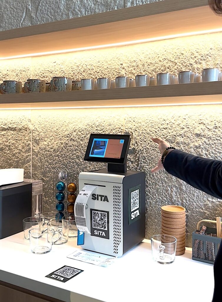Flex Box có thể được đặt ở bất cứ đâu trong sân bay hoặc văn phòng hãng hàng không, giúp nhân viên không còn bị giới hạn ở các quầy cố định. Với màn hình cảm ứng, thiết bị cho phép in thẻ lên máy bay, nhãn hành lý và chấp nhận thanh toán bằng mã QR. Trong buổi trình diễn, SITA thậm chí đặt một Flex Box ngay trên quầy bếp, hòa lẫn giữa các máy espresso, minh chứng cho tính nhỏ gọn và linh hoạt của thiết bị.