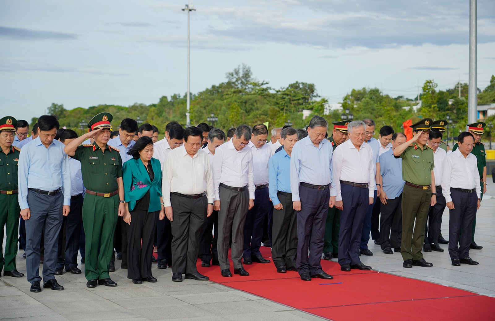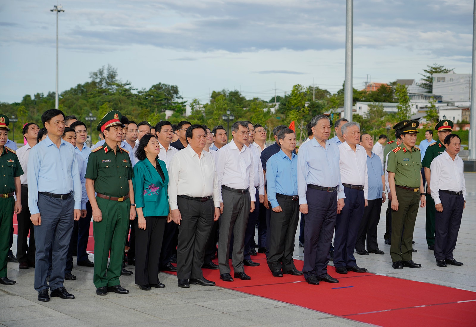 Về phía tỉnh An Giang, đoàn có Bí thư Tỉnh ủy Nguyễn Tiến Hải, Chủ tịch UBND tỉnh Hồ Văn Mừng, cùng các lãnh đạo sở, ban, ngành và đặc khu Phú Quốc. Trong chuyến công tác, Tổng Bí thư và đoàn đã dâng hoa, dâng hương tại các điểm di tích lịch sử - văn hóa và nghĩa trang liệt sĩ, thể hiện lòng biết ơn sâu sắc đối với công lao to lớn của Chủ tịch Hồ Chí Minh và các anh hùng liệt sĩ.